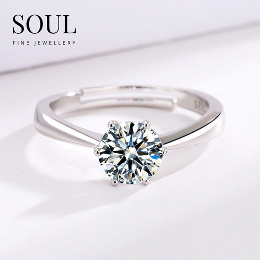 Pure 925 Hallmarked Silver Adjustable Solitaire Ring 0.6 Carats