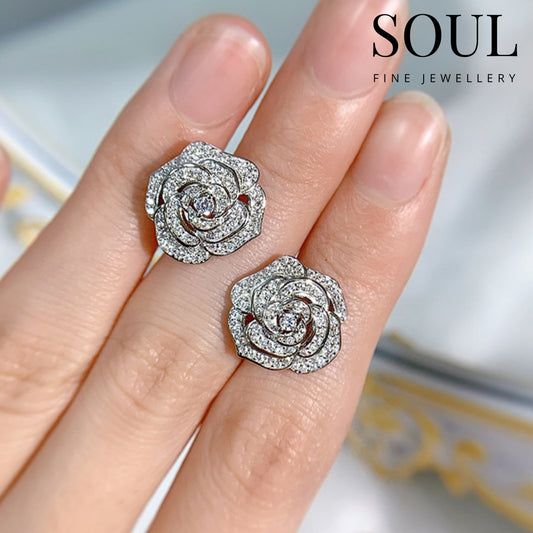 Pure 925 Hallmarked Silver Senorita Rose Stud Earrings, Gift for Women & Girls