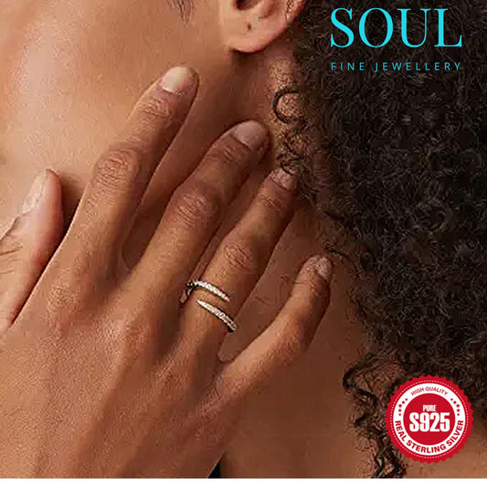 Pure 925 Hallmarked Silver Open Ring with 18K Gold Plating, Gift for Her