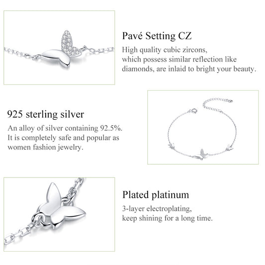 Pure 925 Hallmarked Silver Surrounded Butterfly Tennis Bracelet with Platinum Plating 16+5cms