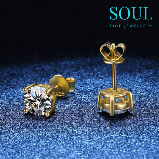 Pure 925 Hallmarked Silver Solitaire Studs 22K Gold Plated, Size 6.5-7mm Round