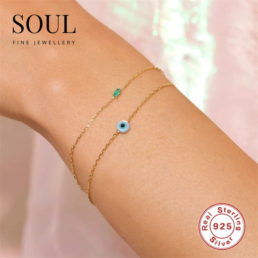 Pure 925 Hallmarked Silver Evil Eye 22K Gold Plated Bracelet for Her
