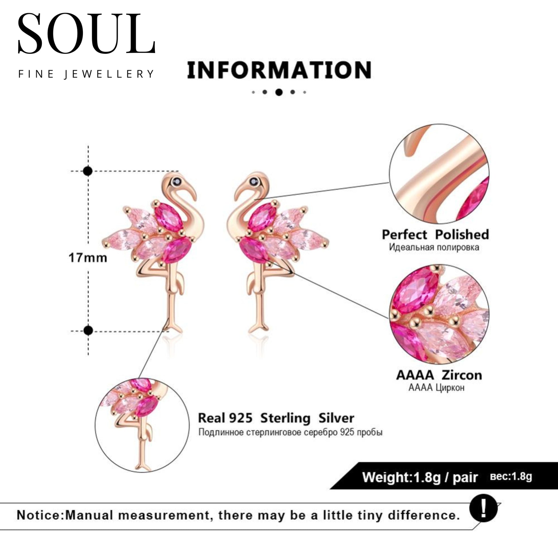 These Pure 925 hallmarked silver flamingo earring studs are a must-have for women and girls! Adorned with stunning pink cubic zirconia gemstones, they add a touch of elegance to any outfit. Perfect for gifting or wearing at parties and daily events, these studs come in a soul gift box for a special touch.